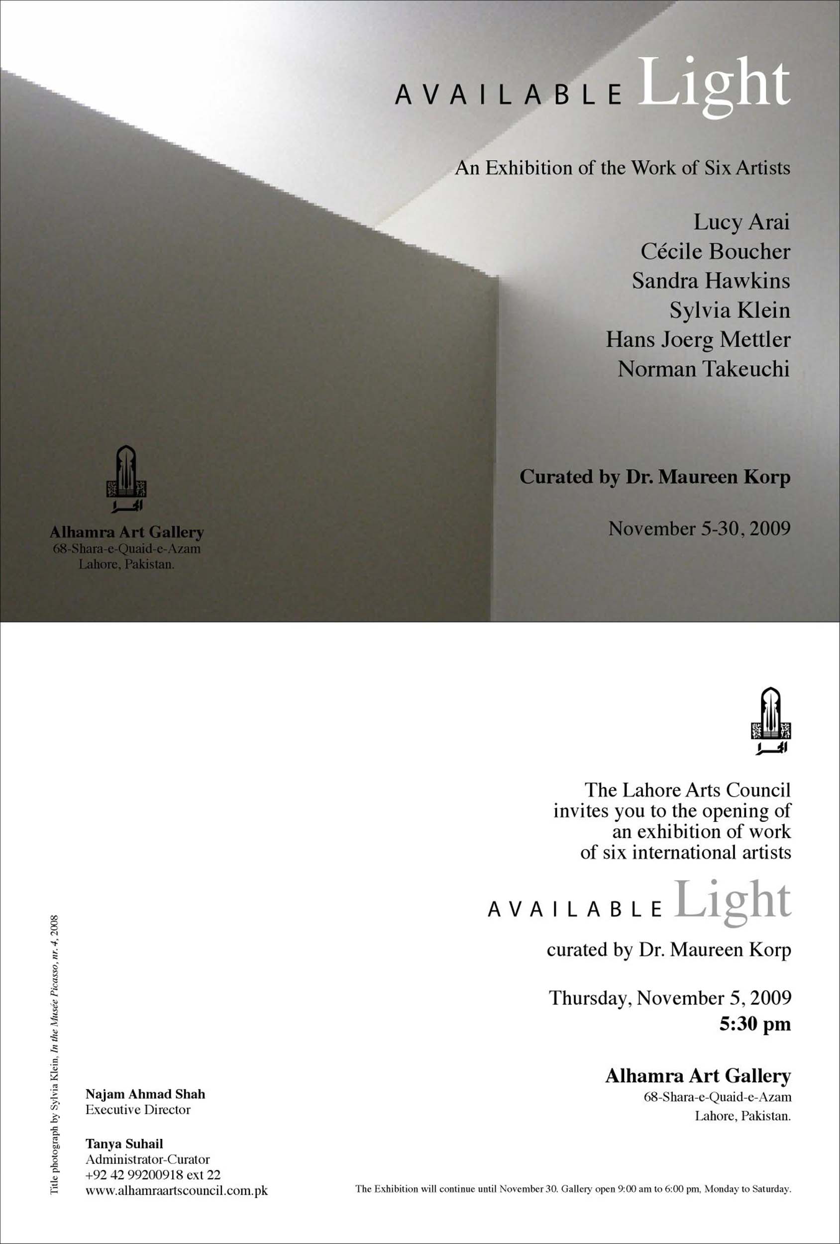 19. 2009 Alhamra Gallery, Available Light, Lahore Pakistan, 6 artists