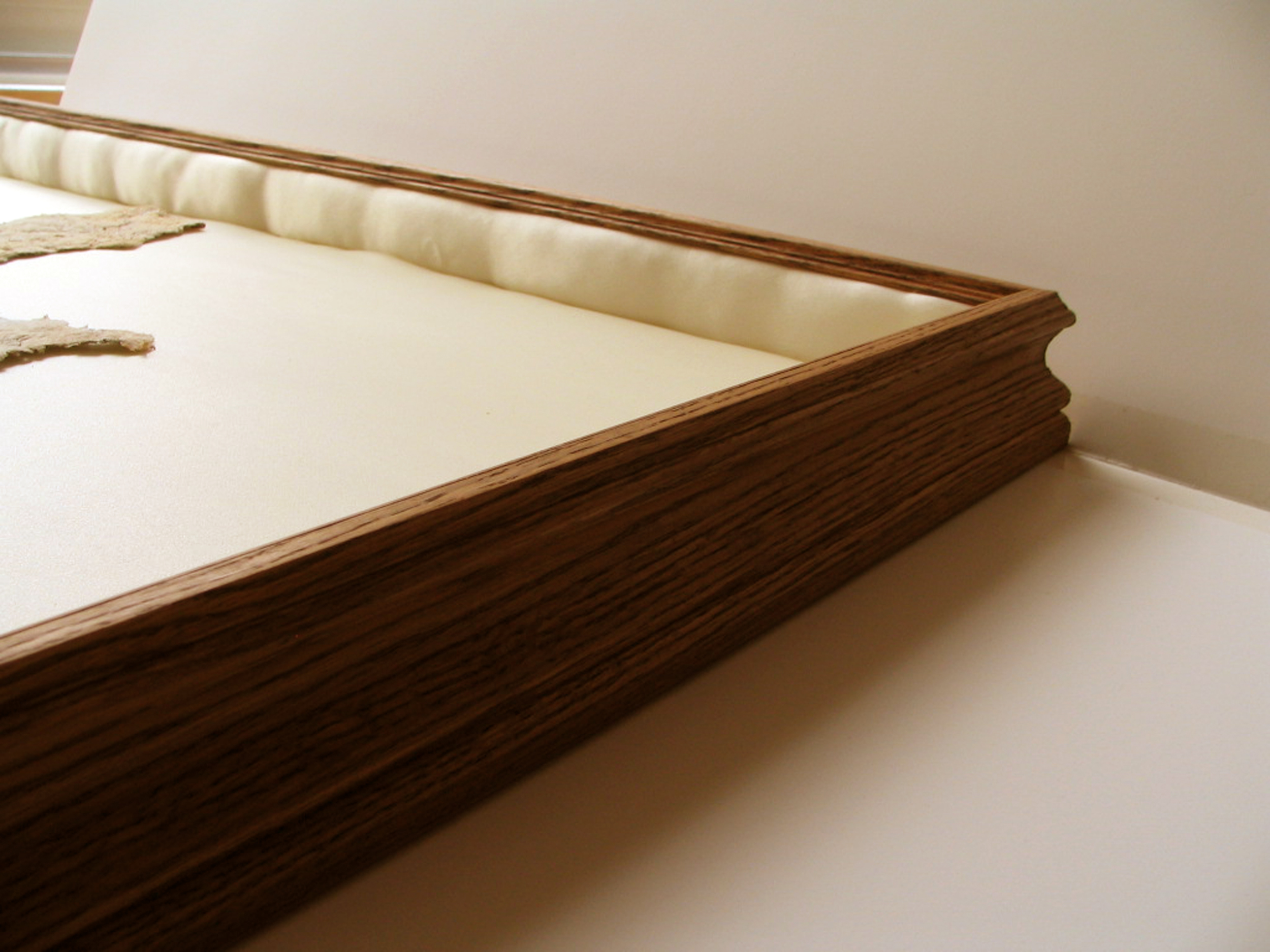 The compressed river debris, preciously contained in these satin-lined oak boxes, references our need to capture and contain that which we love and find beautiful, to archive a trace of presence, and to resist letting go of our mortality.