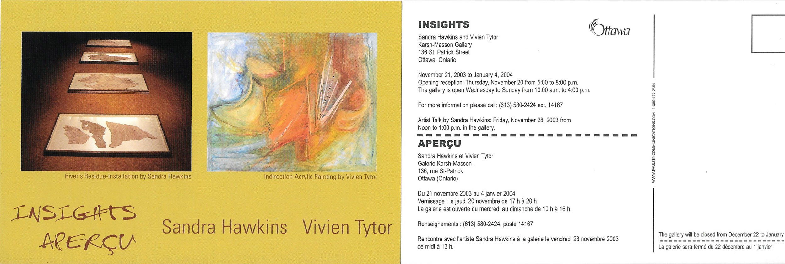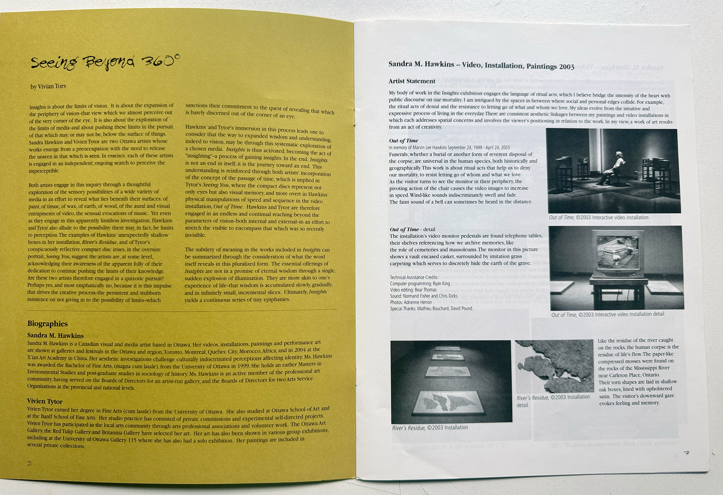 Review: Insights Exhibition Catalogue, Karsh-Masson Gallery, November 21 to January 4, 2004. Page 1 & Page 2