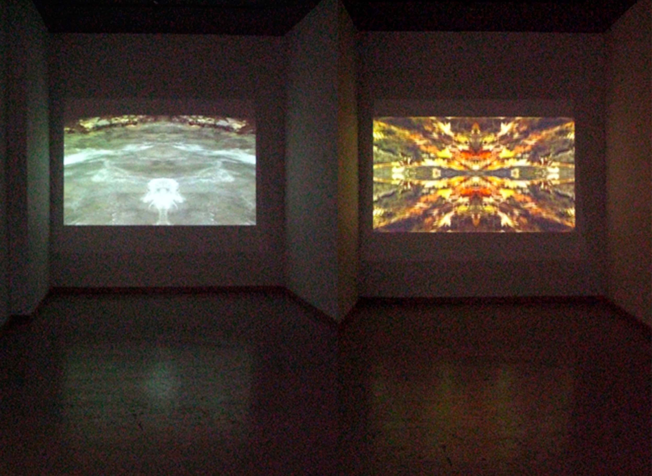 In both approaches, this seeing action through turning creates a space, or time slippage, for the imagination to question and experience oneness with the whole. The back-and-forth, in-and-out actions of the videos and the visitor reference how we try to remember the source before we move forward into consciousness and an identity shift.